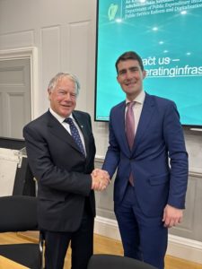 The Irish Academy of Engineering was invited to attend the launch of the Accelerating Infrastructure Report and Action Plan in Government buildings. The stakeholder event was opened by Minister Jack Chambers and Academy President Sean Finlay and Special Advisor Tom Leahy attended the event.