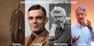 Barry discussed the historical connections between Ireland and key figures in the development of artificial intelligence, including George Boole ( The father of Boolean Algebra -The first Professor of Mathematics in UCC – Cork University where Barry is Professor), Alan Turing (Englishman whose mother was Irish ), John McCarthy (The person who named the field of AI was a first generation Irish emigrant from County Kerry) , and Geoffrey Hinton( Although not Irish but he is the great, great grandson of George Boole).