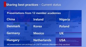 CAETS provides an independent nonpolitical and non-governmental international forum for enlightened dialog and communication of engineering and technological sciences. Founded in 1978 its membership now includes 31 Academies from all continents.
