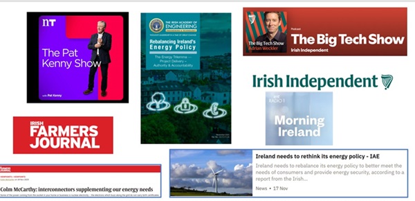 The Irish Academy of Engineering continues to provide thought leadership at a time of great change. The publication in November 2025 of the report on Rebalancing Ireland’s Energy policy received widespread media coverage. Between Newstalk/ Pat Kenny / Morning Ireland/ Irish Independent/Farmers Journal and Podcasts the potential audience for the Academy report on Rebalancing Ireland’s Energy policy is c 850,000- quite a reach.